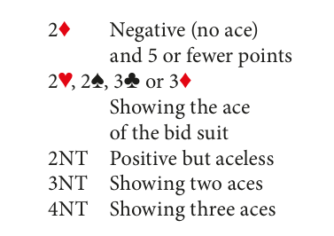 An old system of responses to forcing opening bids based on the assumption that opener has more interest in partner’s first-round controls than in general strength. It was most common to play it in conjunction with a conventional 2♣ opening bid. The responses are: