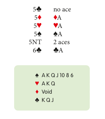 A specialised bid asking for specific aces (not Blackwood). The responses are as follows: