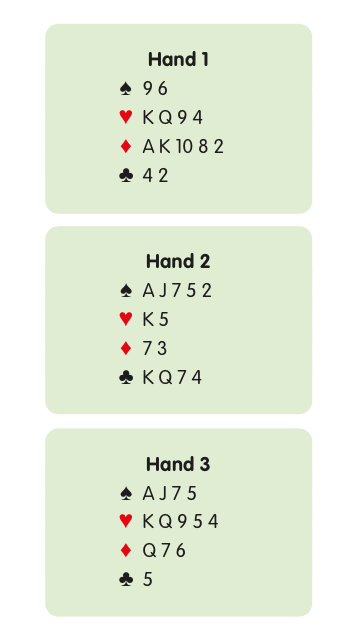 With Hand 3 you bid 2♣ or 2♦ depending upon whether you anchor to the longer or the shorter major.