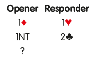 A convention for finding 5-3 and 4-4 fits in the majors after opener’s 1NT rebid. Responder’s 2♣ rebid is artificial, asking for more information and showing at least the values to invite game.