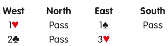 An invitational raise in partner’s first bid suit on the second round of bidding usually showing three-card support, as in this sequence: