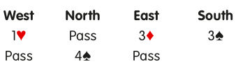 After East’s strong response, it would be unthinkable to stop short of game or allow the opponents to play undoubled. Both West’s pass over 3♠ and East’s pass over 4♠ are forcing.
