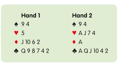 In the cases when responder shows a minor, opener has to choose whether to complete the transfer by bidding responder’s suit or to bid the suit/ denomination below that. It is usual to play one action as showing support for responder’s suit and the other as denying it. As is the case with red suit transfers, responder may have a weak hand (intending to pass opener’s transfer completion) or a strong hand.