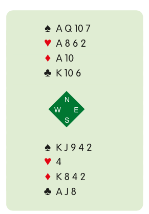 Suppose all follow to four rounds of hearts but East shows out on the fourth round of diamonds. In this case, West’s shape is 2-4-4-3 and East’s is 2-4-3-4, so you play East for the ♣Q.