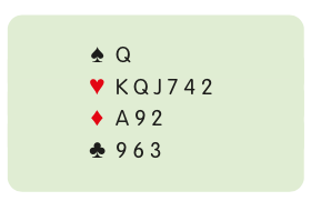 Suppose you lead the K, losing to the A. On the second round of spades, you can discard a high diamond, the nine, to encourage diamonds, or a low club, the three, to discourage clubs.