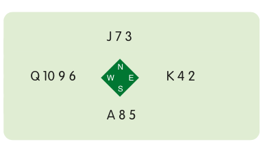 After West leads the ten and dummy plays low, East can withhold the king, allowing the defenders to finesse against dummy’s jack. Had West led a fourth best six, East would have to put up the king to stop the eight from scoring, setting up the jack as a third- round winner.