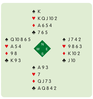 South plays in 3NT. West leads the ♠6, which ‘knocks out’ the ♠K. Declarer plays on hearts, leading high cards from dummy to ‘knock out’ West’s ace. The defenders then play a second and (if South ducks) a third round of spades to knock out South’s ♠A.