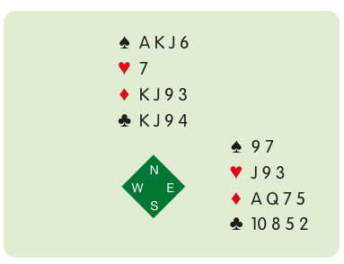 South plays in 4♠ after West opened 3♥ and East raised to 4♥. When West leads the ♥A, it is clear that a heart continuation will be unproductive. Accordingly, East’s card gives a McKenney signal, in this case the ♥J, a high card, to ask for the higher- ranking side suit, diamonds. Reverse East’s minors and the signal would be with the ♥3, which West should be able to read as low.