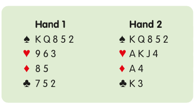 A one-over-one response of 1♠ is correct with either of the above hands if partner opens one of either minor.