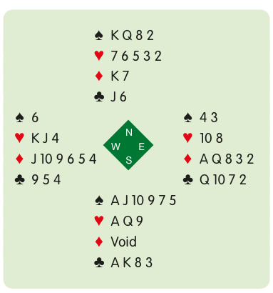 The snag is that if you draw two rounds of trumps and ruff two clubs, dummy will be out of trumps and it will be safe for West to exit in diamonds. Accordingly, you draw only one round of trumps. Then you cash the top clubs, crossruff the minors and play a heart to the nine (or cover East’s card). Since East has the outstanding trump, the partial elimination succeeds.