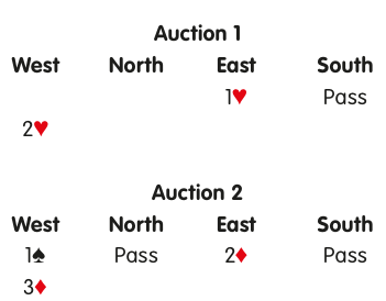 To increase the level of the contract in partner’s last-mentioned denomination. West’s last call, shown in the auctions below, are both a raise.