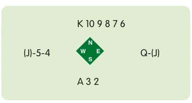 South, the declarer, cashes the ace and East drops the queen. Assuming that with queen-jack doubleton, East will play the jack half the time and the queen half the time, East is roughly twice as likely to hold the singleton queen as he is to hold the queen-jack doubleton.