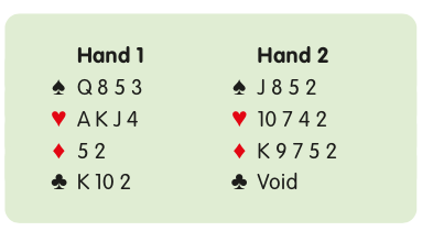 With the first responding hand, you have the values to raise 1NT to 3NT but want to play in a 4-4 fit in a major if one exists. You intend to raise 2♥ to 4♥, 2♠ to 4♠ or to jump to 3NT over 2♦. On the second hand, you use Stayman intending to pass at your next turn, confident that a suit contract will play better than 1NT.