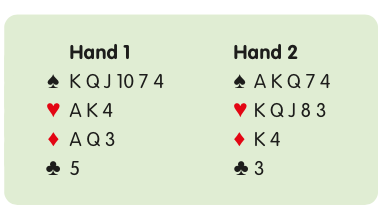 An opening bid of two of a suit used to show a strong hand with at least five cards in the suit named. You can play them as not forcing, forcing for one round (Acol) or forcing to game (Culbertson). In Acol, either of the following hands would be suitable for a strong two bid (2♠):