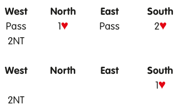 In the first sequence, West cannot possibly hold a very strong balanced hand.